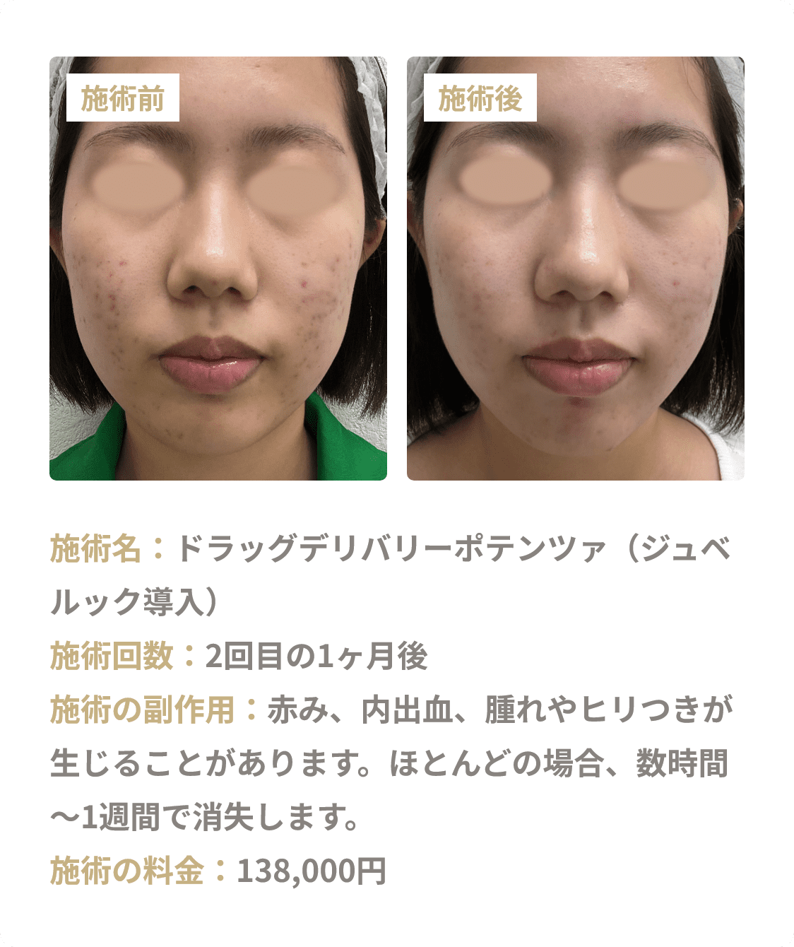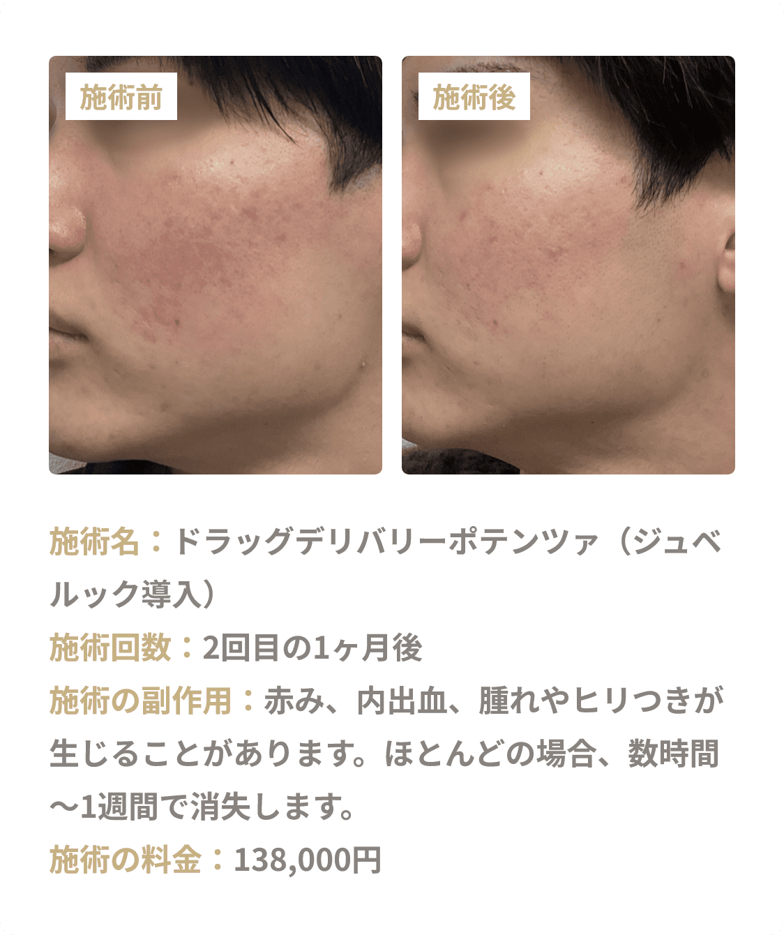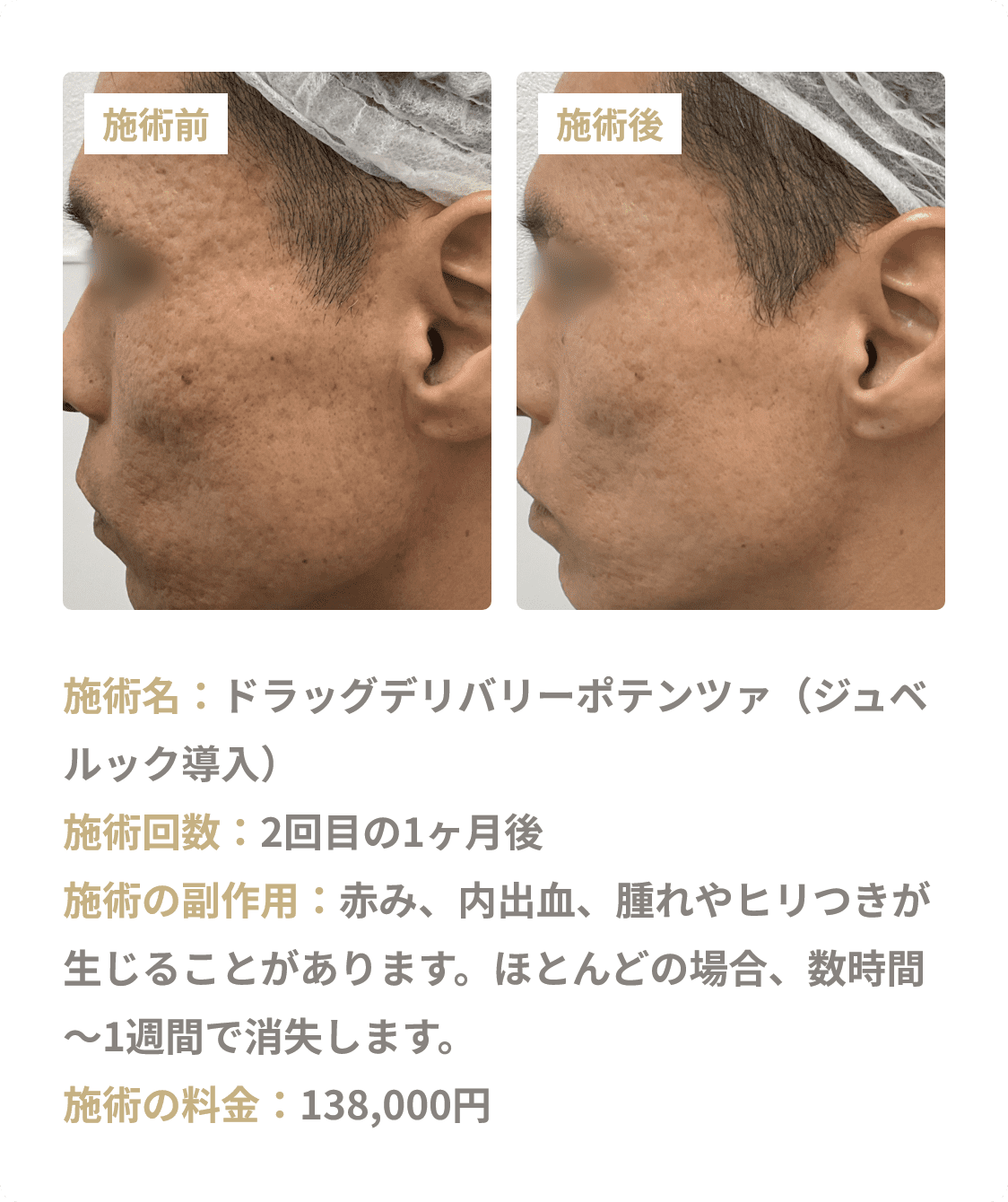 ◼副作用・リスク:感染、色素沈着、毛嚢炎、紅斑