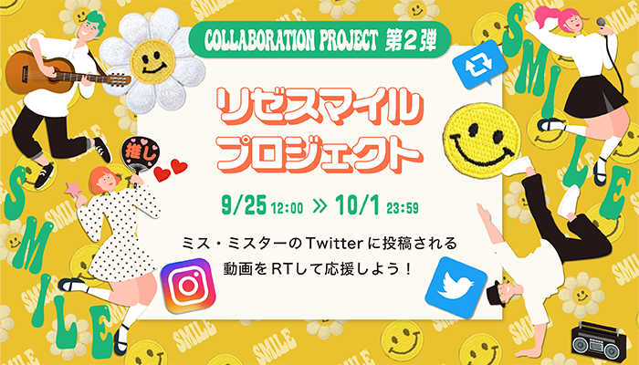 ミス・ミスターのファイナリストが最高の笑顔になれる瞬間・事・物・時間を動画で撮影、Twitter・Instagramに投稿し、ツイートのRT数を競い合います。 ※Instagramは評価指標には含まれません