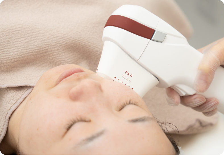 ハイジオ(ハイフ)は、皮膚の土台となる筋膜層(SMAS)に超音波の熱エネルギーを照射することで、内側から組織を引き上げ、リフトアップ効果が期待できます。アプローチの異なる2つの施術を組み合わせることで強力な小顔・リフトアップ効果が見込めます。